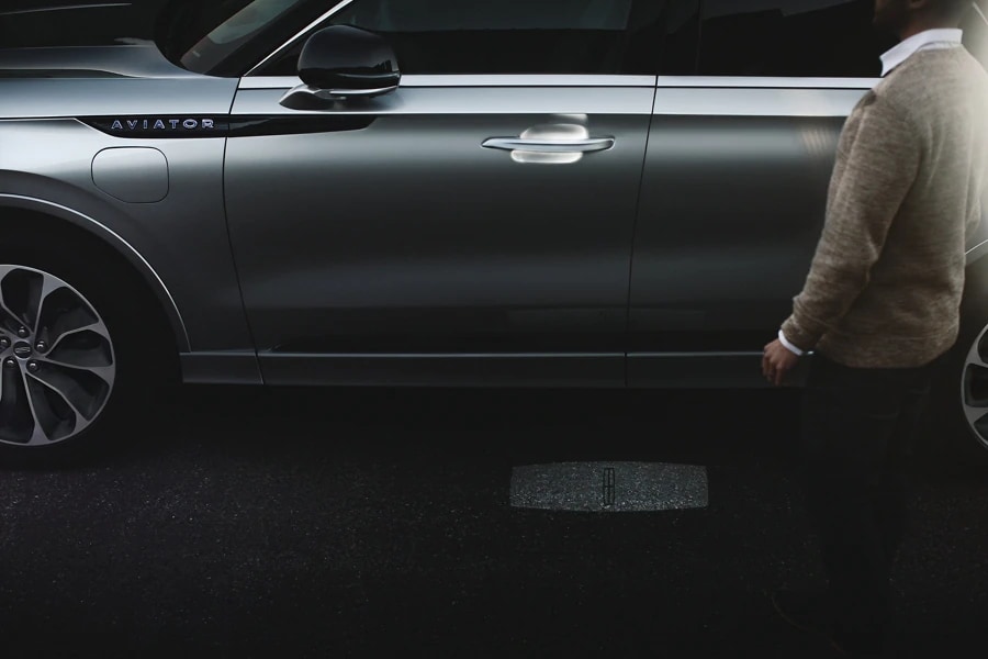 As part of the approach sequence, the door handle pockets softly glow while a Lincoln logo welcome mat is projected from the sideview mirror, illuminating the ground below the door. These lights help to guide the way while helping you see any debris, unevenness or water, making for more sure-footed entrances.